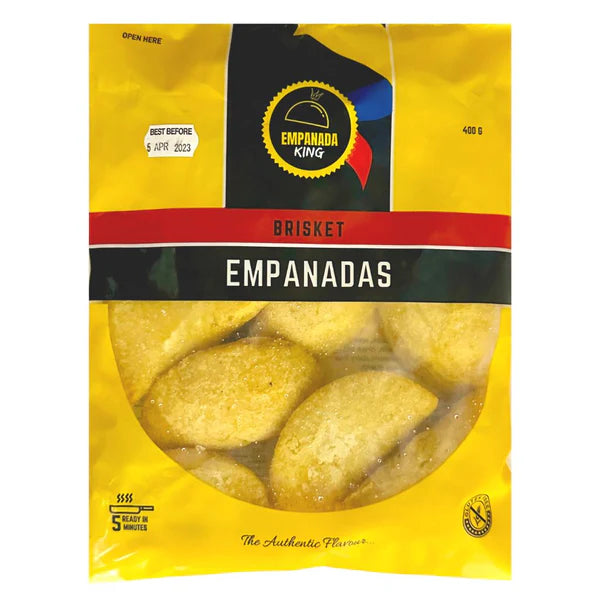 This pack of 10 empanadas (400g total) is packed with tender, slow-cooked brisket, creating a mouthwatering experience in every bite. Our empanadas are crafted with a flaky, buttery crust that perfectly complements the rich brisket filling.